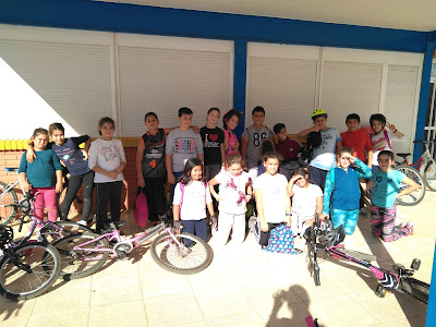 Los alumnos de 4º A y 4º B nos hemos ido de excursión con las bicis y nos han acompañado la seño Cristina, la seño Vanesa, el maestro Isidoro y algunos padres y madres. La policía también nos ha acompañado con el coche, iba delante de nosotros.